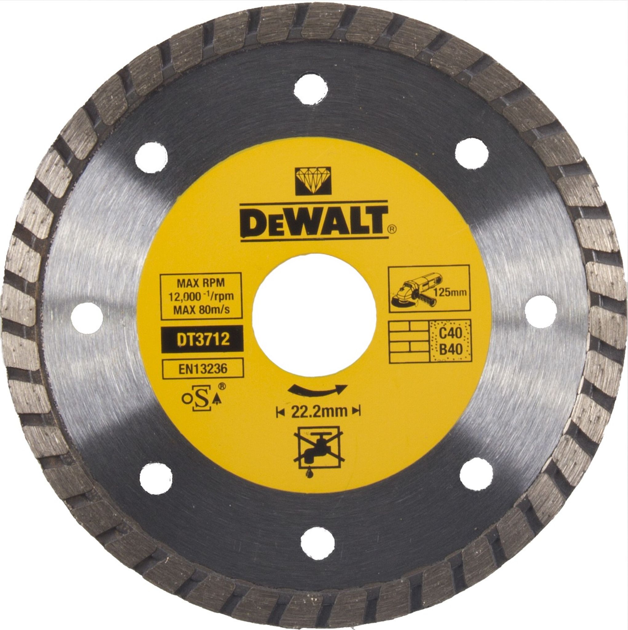 DEWALT DIAMANTKAPSKIVA MURVERK DT3712 TURBO 125X22,2MM