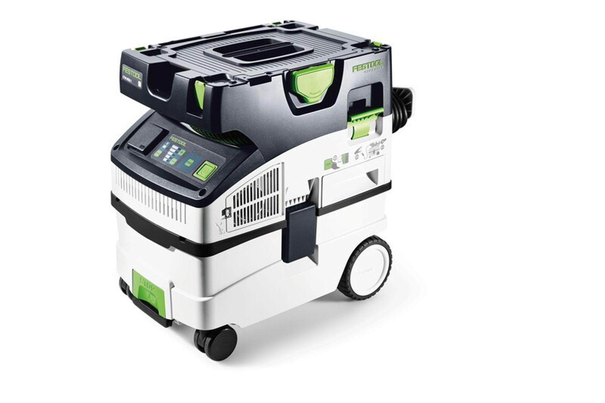 Festool CTM MIDI I CLEANTEC är en smidig och kraftfull dammsugare som klarar dammklass M – perfekt för professionella användare som behöver säker dammuppsamling på en mängd olika arbetsplatser. Den kompakta designen gör den lätt att ta med sig, medan smarta funktioner som Bluetooth®-styrning, manuell filterrengöring och intuitiv touch-panel gör arbetet både effektivt och bekvämt. Den invändiga slangförvaringen, kabelvindan och Systainer-kopplingen gör att du håller ordning även i farten.