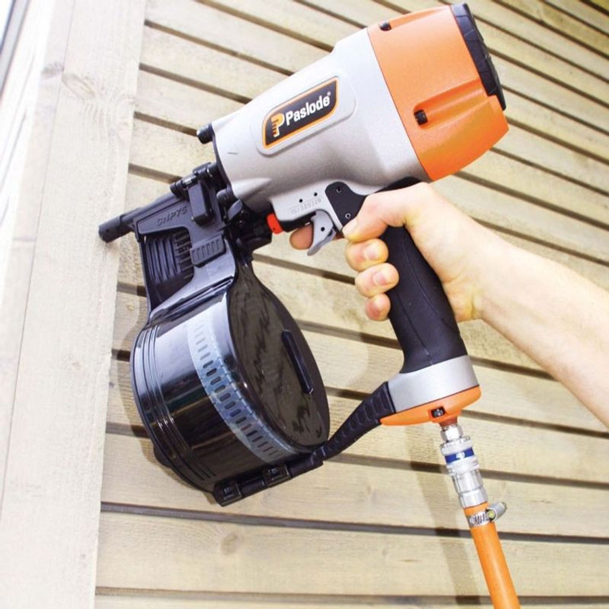 Snabb och effektiv: Perfekt för spikning av trall, panel, råspont och skivmaterial.