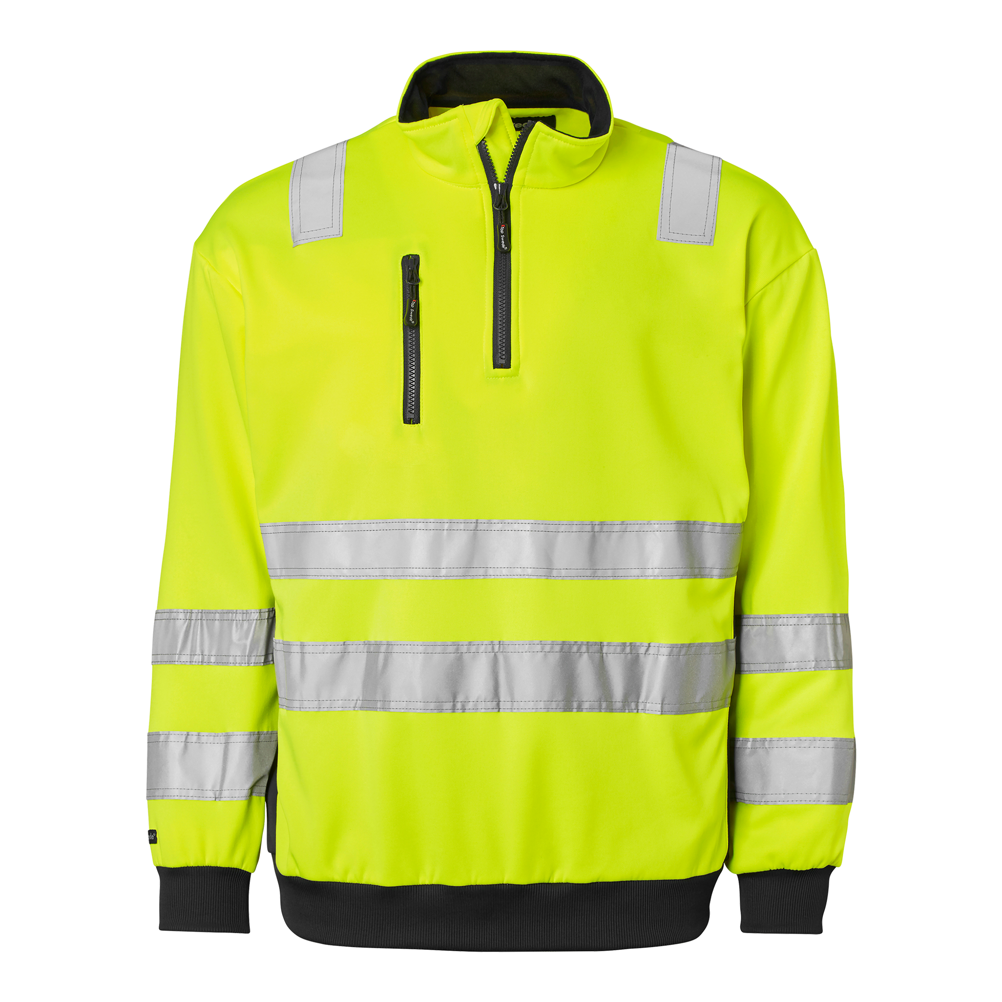 Sweatshirt med krage och kort dragkedja som går upp i halsen. Bröstficka med dragkedja. Mudd i nederkant och ärmslut.