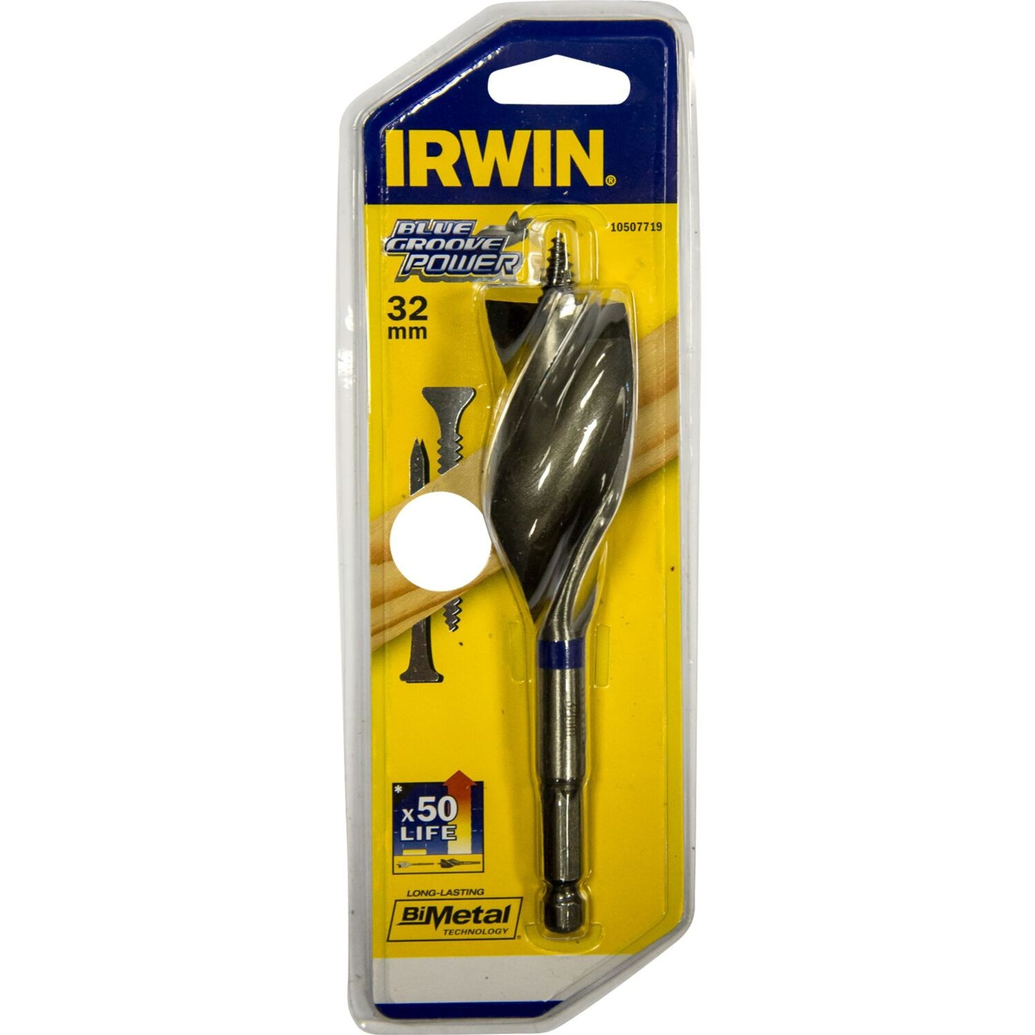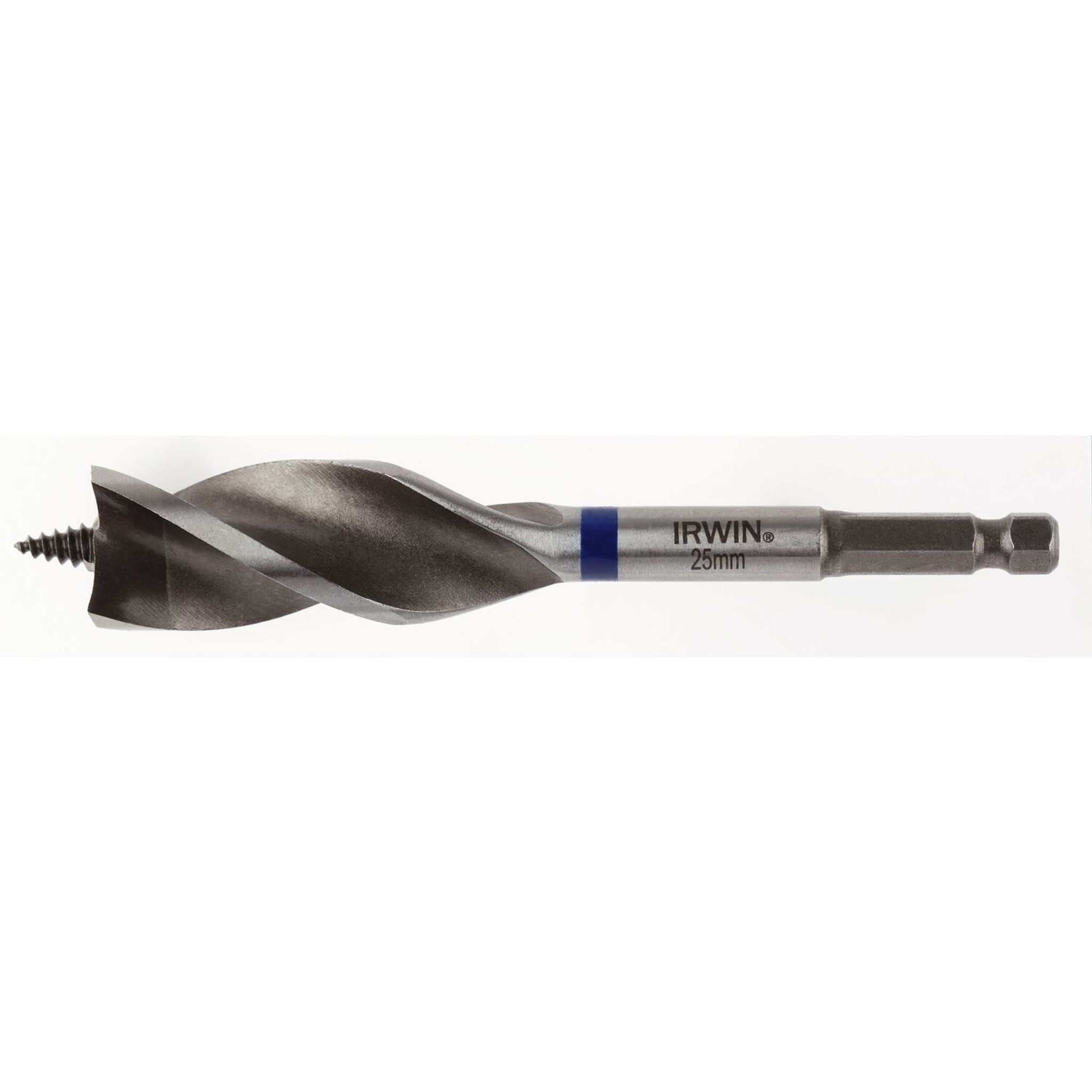 Irwin Blue Groove Power. Med HSS skär för extra lång hållbarhet och livslängd även när man träffar spik. Helgängad borrspets som driver ner borret i träet. Kompakt skaft designat för att passa de vanligaste borrmaskinerna. Trippel spiraldesign transporterar effektivt bort borrspånet vilket ger rena hål och upp till 6 gånger snabbare borrning än traditionella centrumborr.