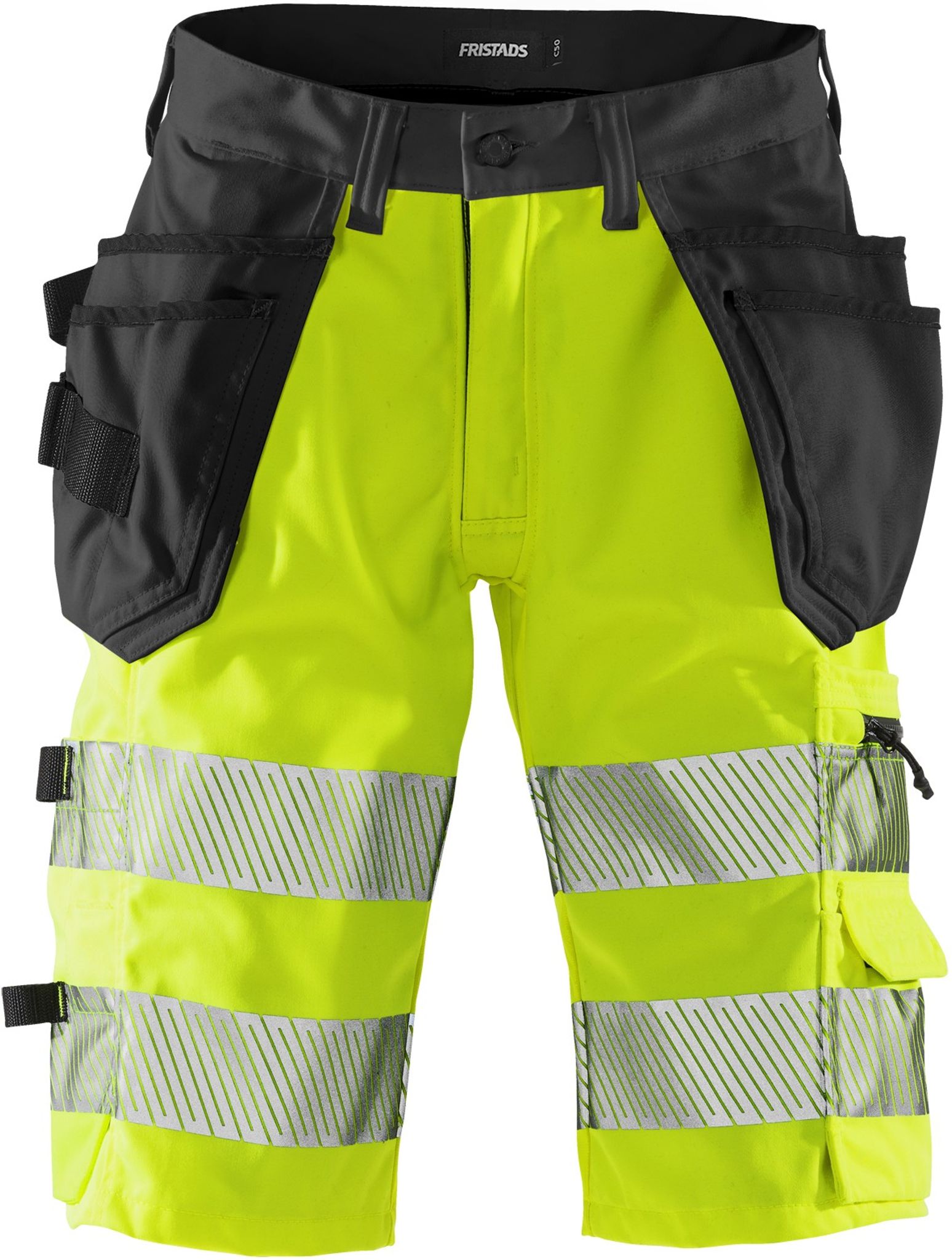 Partier med 4-vägs stretch i midja, sidor, ok bak och gren / 2 CORDURA®-förstärkta löst hängande spikfickor, den ena med 3 mindre fickor och verktygshälla och den andra med en extra ficka / 2 sidfickor / D-ring / 2 bakfickor med dragkedja / Dubbel förstärkt grensöm / Hammarhank / Tumstocksficka med verktygsficka, pennficka samt knapp och hälla för kniv / Benficka med telefonficka, ID-kortsficka och ficka med dragkedja / Godkänd enligt EN ISO 20471 klass 1 / Certifierad efter 25 tvättar / Miljödeklarerad, EPD reg.nr 3884 på environdec.com / OEKO-TEX®-certifierade.