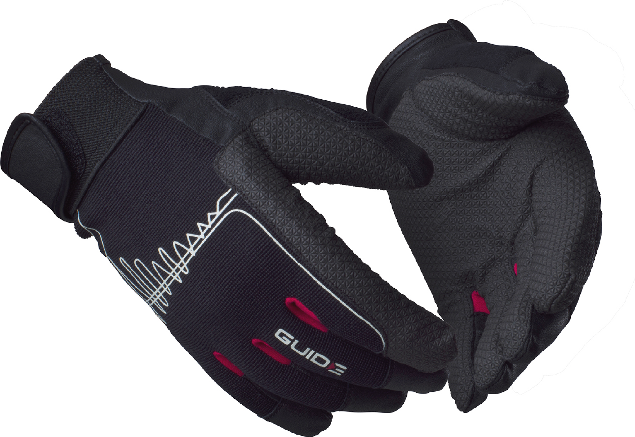 Slitstark och smidig vibrationsdämpande arbetshandske. Innerhanden är utrustad med GUIDE VIBRO™, ett 6 mm tjockt antivibrations-material, beklätt med Guides premium PU syntetläder. Ovanhand i nylon. Godkänd enligt EN ISO 10819:2013/A1:2019 (TRM 0,70 & TRH 0,57).