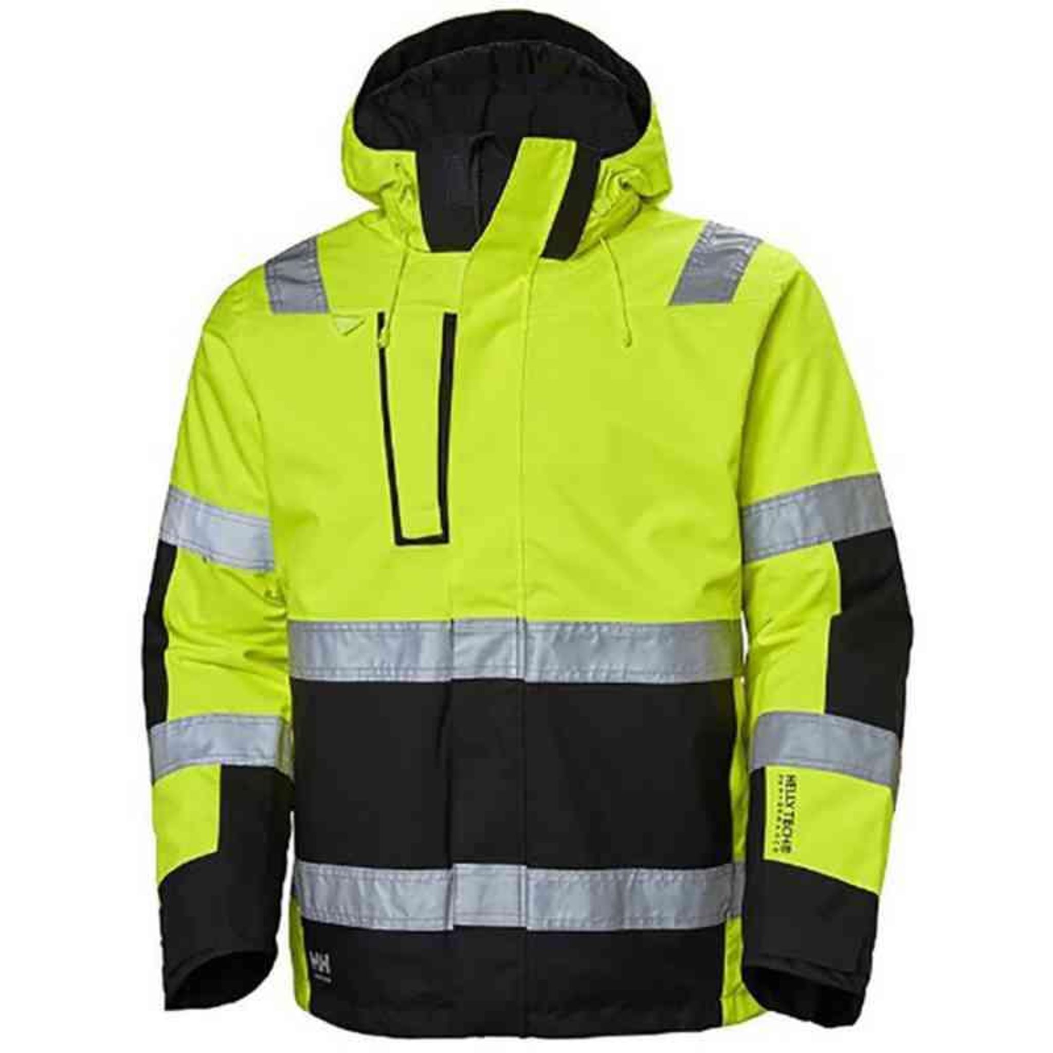 Fodrad vinterjacka i vatten- och vindtätt Helly Tech Performance-material som andas. YKK-dragkedja. Innerficka för surfplatta. Inga axelsömmar. Dragkedja under ärm för ventilation. Avtagbar huva med dragsko och kardborrejustering, anpassad för hjälm. Justerbar nederkant med resår. Material: 100% polyester. Vikt: 215 g/m². Foder 100% polyamid. Vikt: 58 g/m². Isolation Primaloft Black. Vikt: bål 133 g/m², ärm 100 g/m². Godkänd enligt EN ISO 20471:2013, klass 3, EN 343:2003, EN 342:2004.